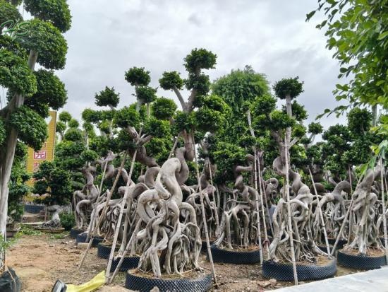 El Ficus microcarpa también es conocido por su adaptabilidad a diversos tipos de suelo y niveles de humedad. Se adapta fácilmente tanto a suelos bien drenados como a suelos que retienen la humedad, lo que facilita su integración en diversos paisajes exteriores. Ya sea que busque crear un jardín de estilo tropical o añadir un toque de dramatismo a su espacio exterior, el Ficus microcarpa es una opción versátil que realzará su belleza. cualquier entorno al aire libre .