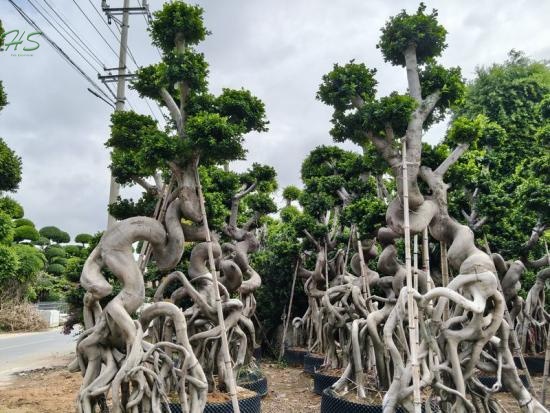 Exposición al sol : Bonsái único con forma de ficus dragón Prefiere la luz solar filtrada y debe colocarse en un lugar soleado, pero no expuesto directamente al sol intenso. El exceso de sol puede quemar las hojas, mientras que la falta de sol puede hacer que pierdan su color.