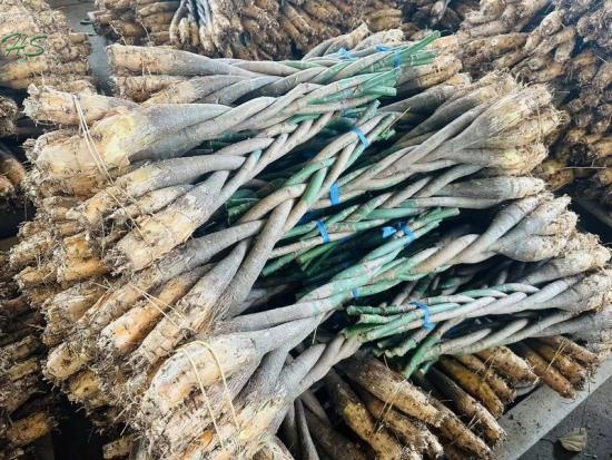 Tiene un tronco grueso y trenzado, formado por múltiples tallos jóvenes. Las trenzas comienzan cerca de la base de la planta y se extienden hacia arriba hasta cierta altura, antes de que los tallos se separen y formen un grupo de hojas verdes en la parte superior.
